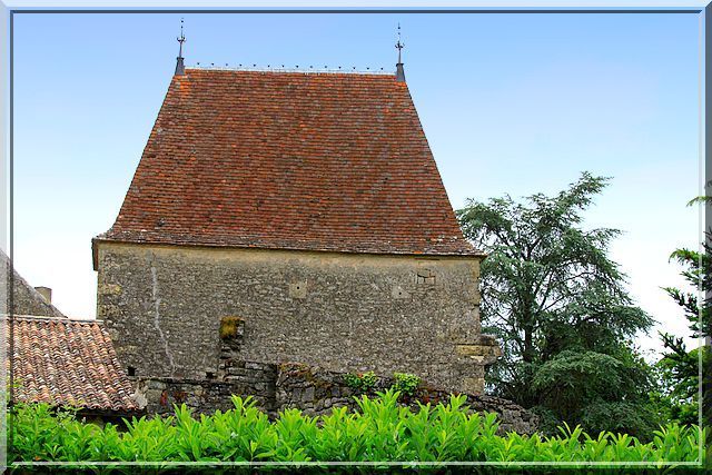 * A droite dans le champ, la ronde construction est un pigeonnier, signifiant que les propriétaires étaient riches.